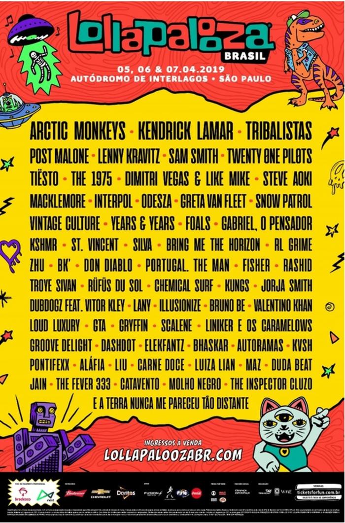 O rapper americano Kendrick Lamar e a banda britânica Arctic Monkeys estão entre as principais atrações da edição de 2019 do Lollapalooza.