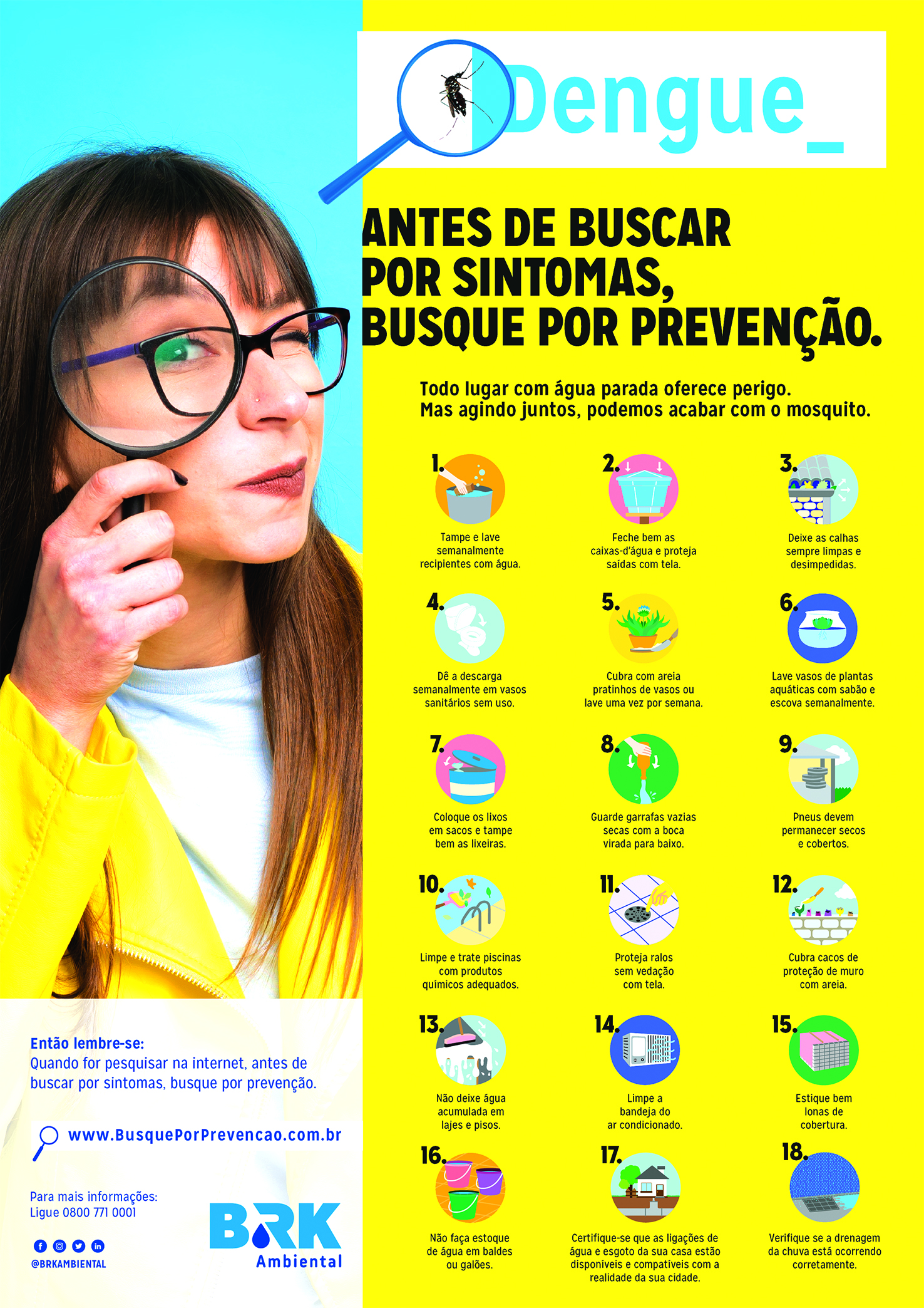 Além das mídias sociais, a BRK Ambiental lançou o site https://busqueporprevencao.com.br, com dicas do Dr. Drauzio Varella, que podem ajudar as pessoas a se prevenirem em casa e na vizinhança.