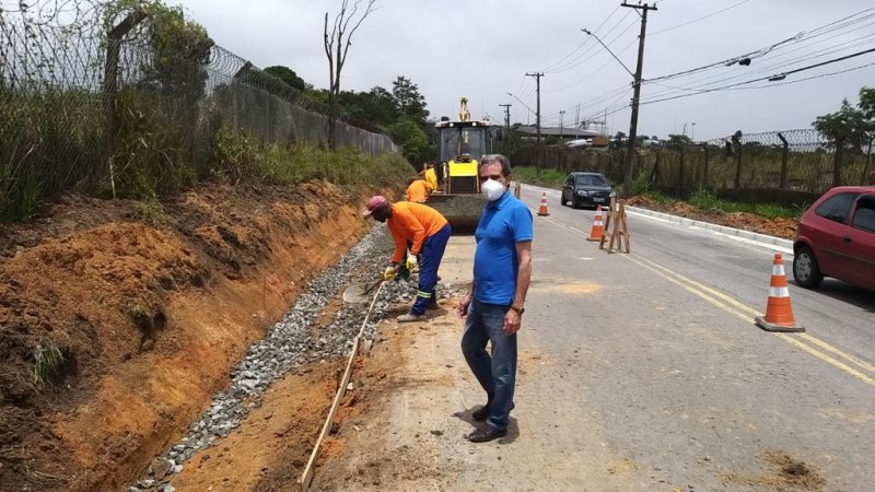 Vereador Eugênio Rufino acompanha início das obras na Estrada Ayrton Senna